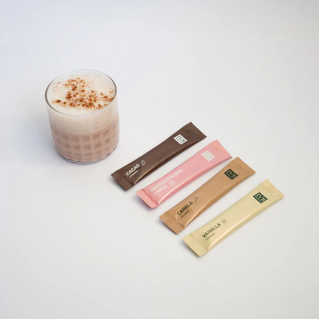 Podrás elegir el sabor que más te guste en paquetes de 10 sticks, o un mix de 10 sticks combinados (una mezcla de sticks de los 4 sabores: 3 vainilla, 3 cacao, 2 canela, 2 chocolate blanco-fresa).