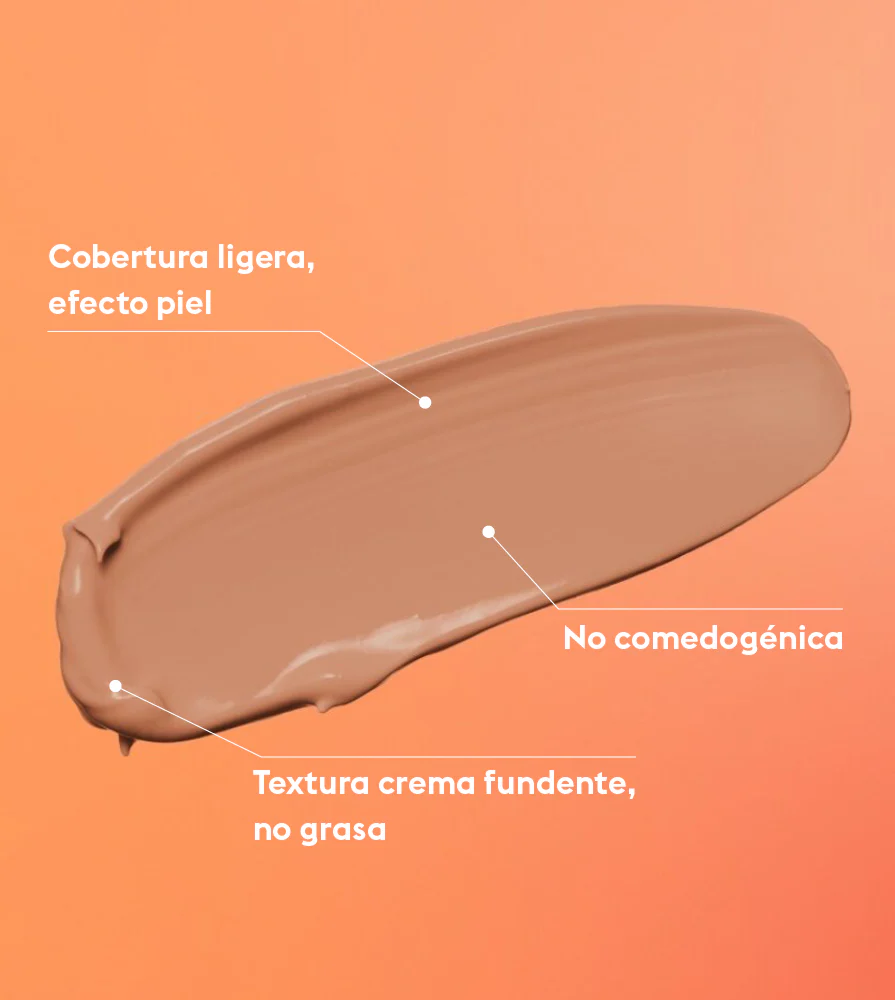 Indicada para todo tipo de pieles, incluso sensibles, que buscan una solución híbrida de cuidado y maquillaje con efecto buena cara inmediato. Acabado natural y no comedogénico.