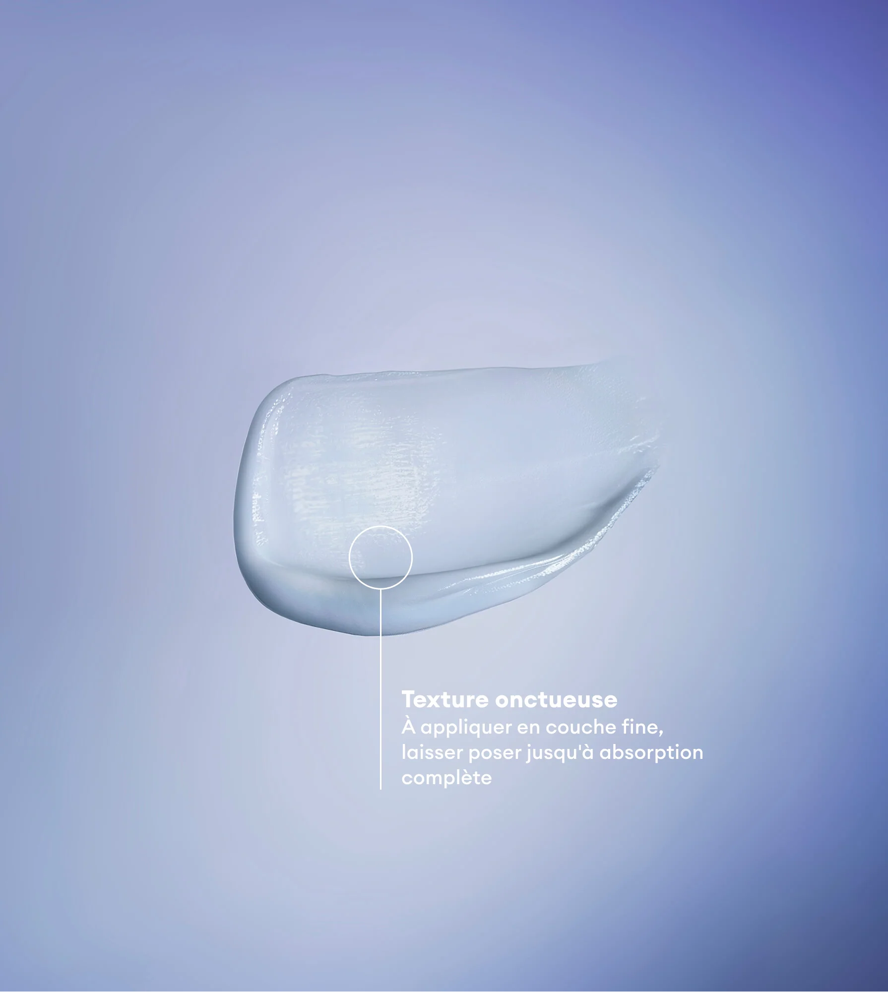 Para una acción reparadora intensiva, su fórmula avanzada también incorpora Ceramidas. Estos lípidos, naturalmente presentes en la piel, son componentes clave del cemento intercelular. Al fortalecer la barrera cutánea, limitan la pérdida de agua y protegen la piel de las agresiones externas.