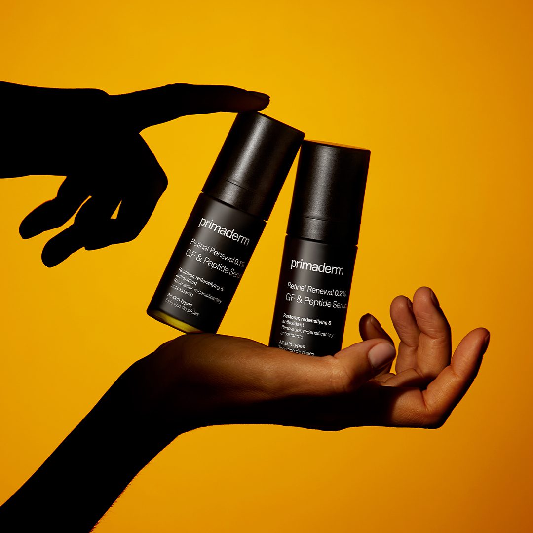 Aplicar al menos 1 envase de la potencia actual Retinal Renewal 0,1% antes de pasar a Retinal Renewal 0,2%, con el doble de concentración de Retinal Puro